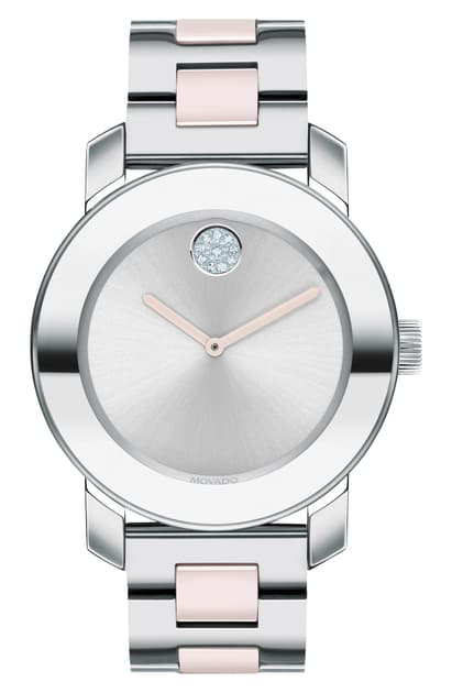 Movado Bold Ceramic Stainless Steel Bracelet Watch 36mm In Silver Blush Modesens