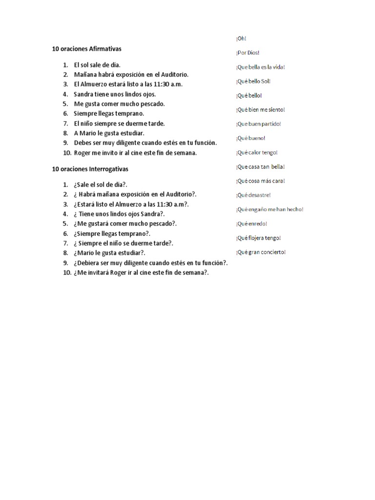 10 Oraciones Afirmativas Docx