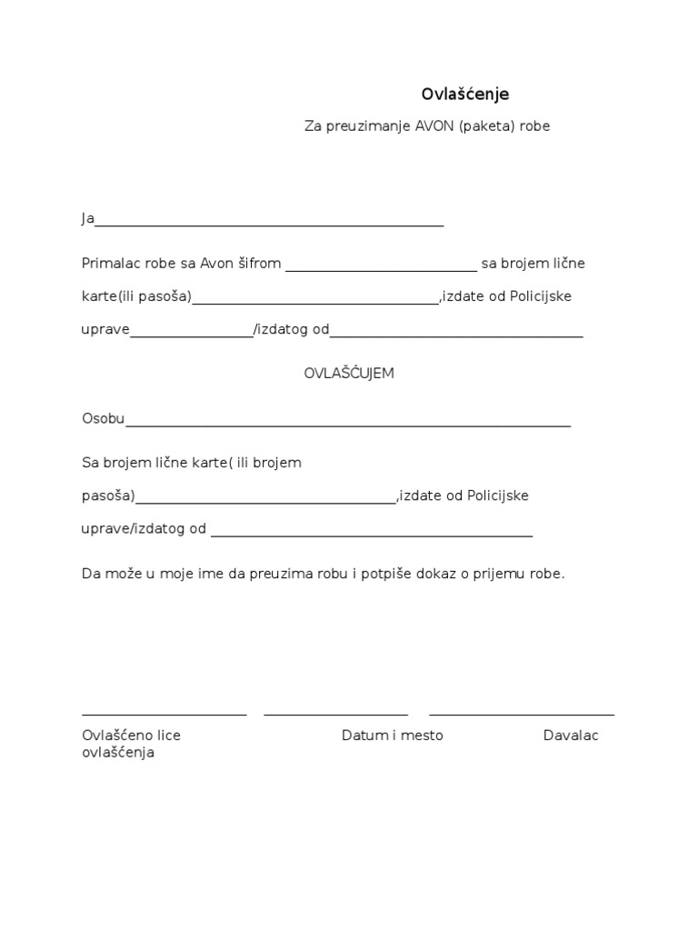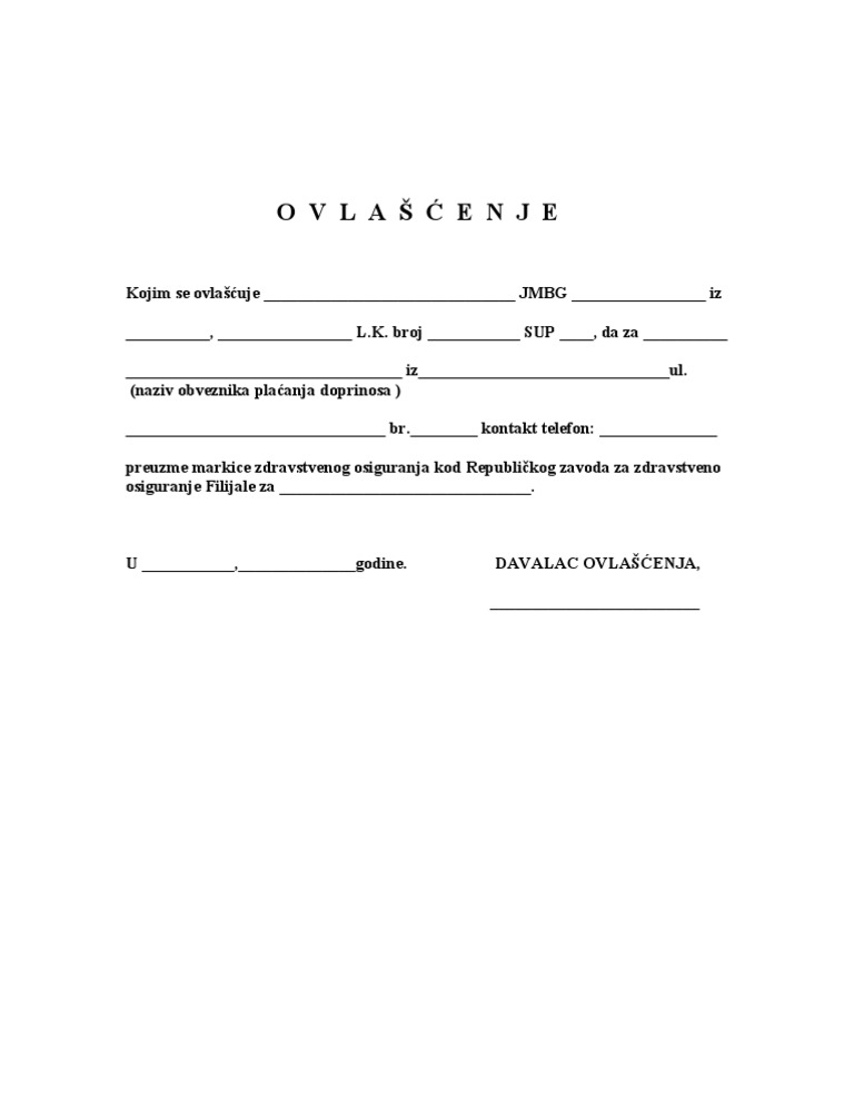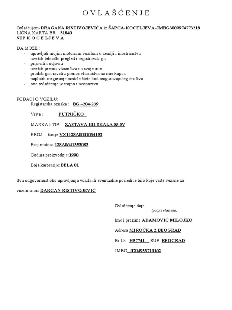 Here are the instructions how to enable javascript in your web browser. Z ulica br br lk jmbg da u moje ime i za moj račun može upravljati mojim vozilom u zemlji i inostranstvu odjaviti ga izvršiti produženje registracije izvršiti promenu imaoca vozila i preneti ga na svoje ime ili treće lice te naplatiti štetu kod nadležnog osiguravajućeg društva. Obrazac ovlašćenje author. Ugovor o probnom radu.