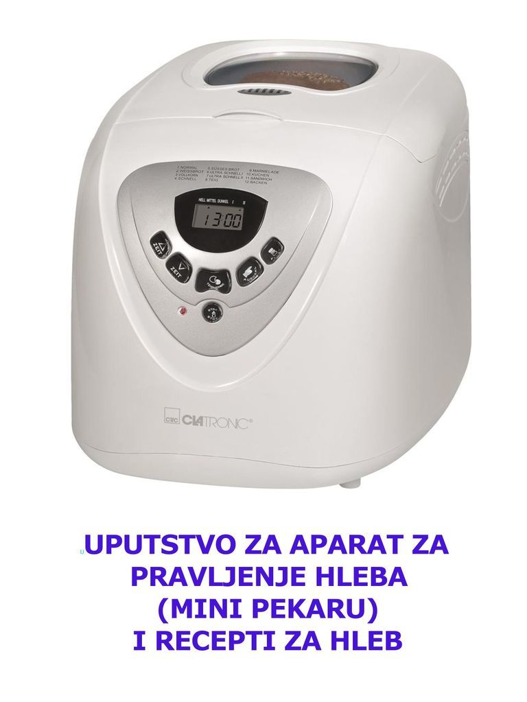 Uputstvo Za Aparat Za Pravljenje Hleba Mini Pekaru I Recepti Za Hleb