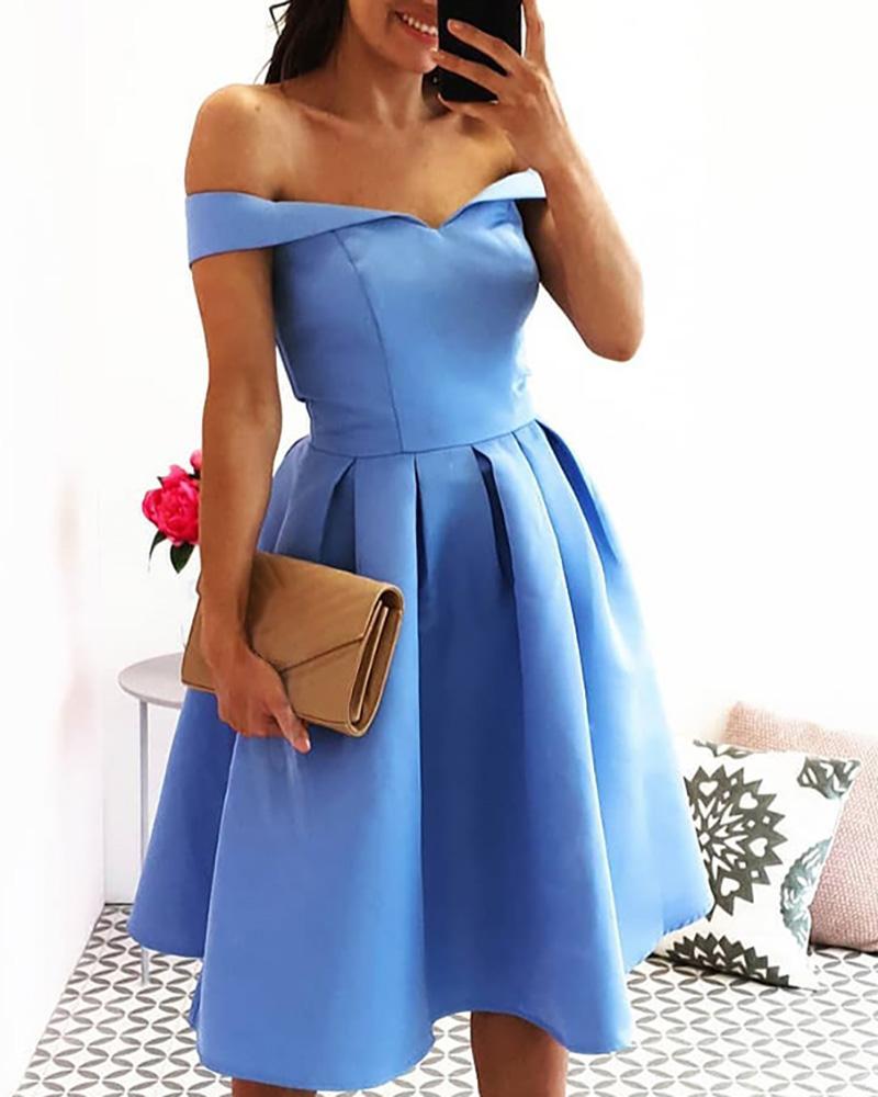 Solid Off Shoulder Pelated Dress