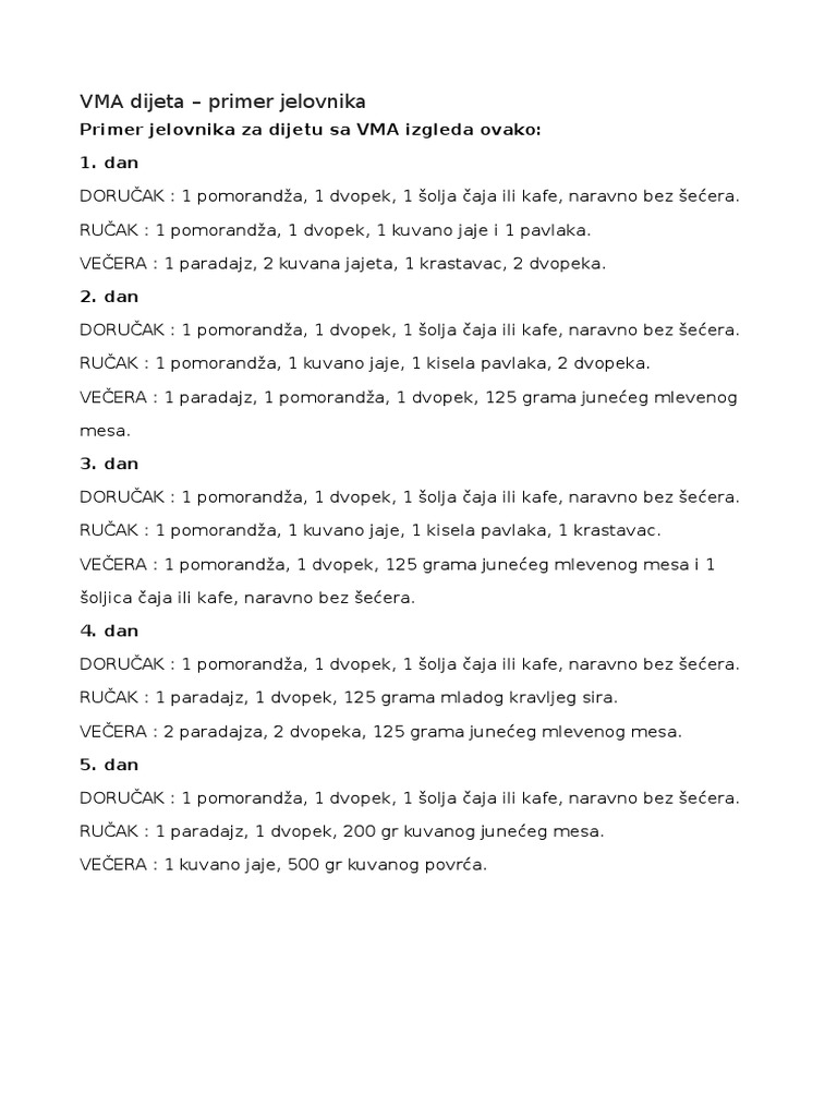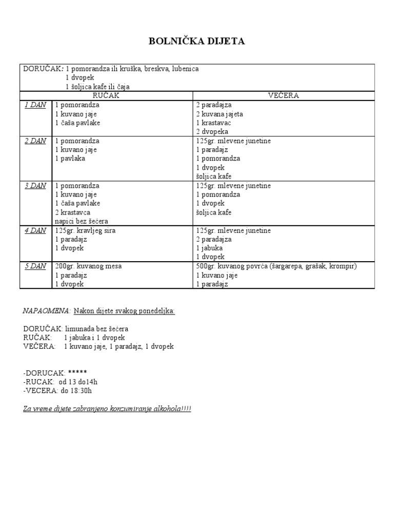 Bolnicka Vma Dijeta 15 Dana Jelovnik Iskustva