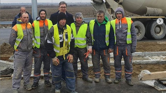 Pink Rs Vucic Nenajavljeno Obisao Radove Na Autoputu Surcin Obrenovac Radnici Iz Cacka Privode Posao Kraju Predsednik Im Cestitao Foto