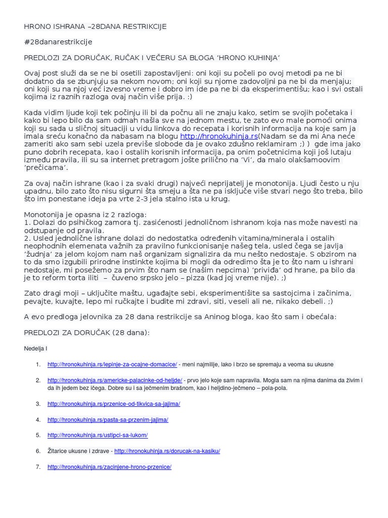 Hrono Ishrana 28 Dana Restrikcije