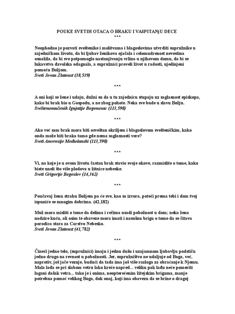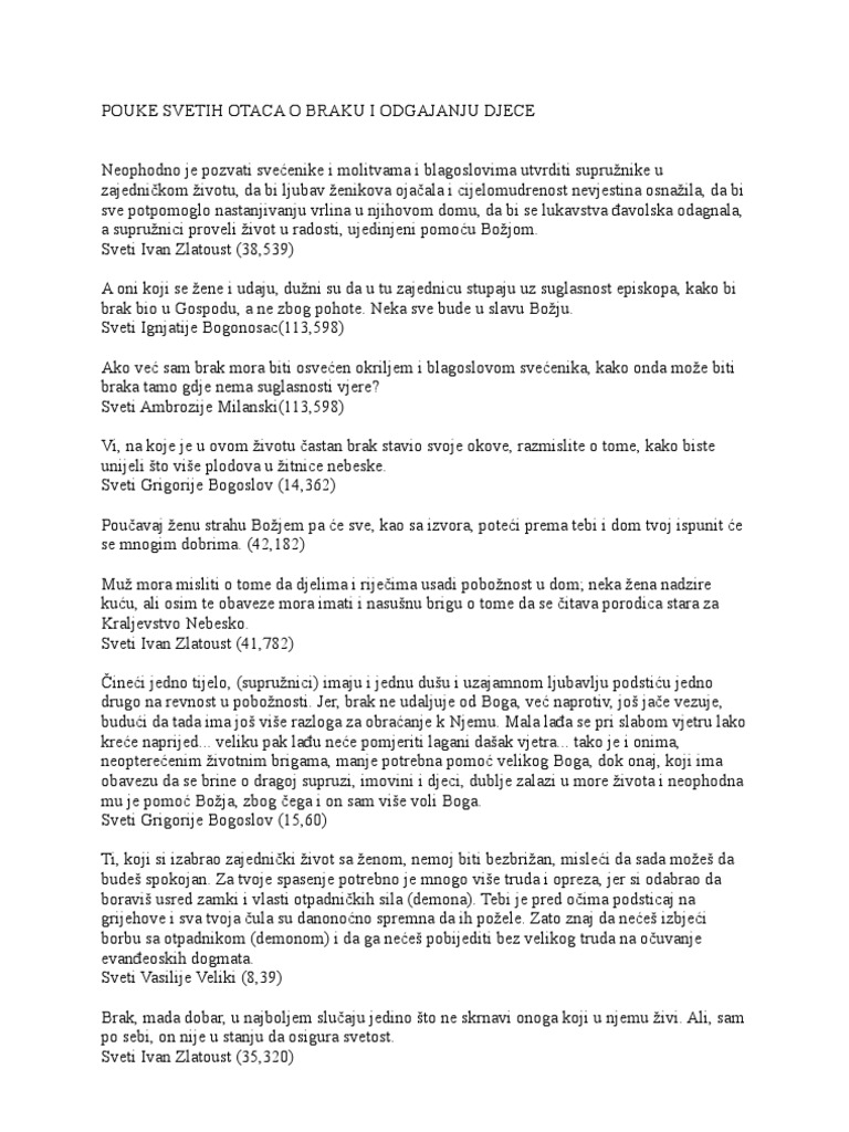 Pouke Svetih Otaca O Braku I Odgajanju Djece
