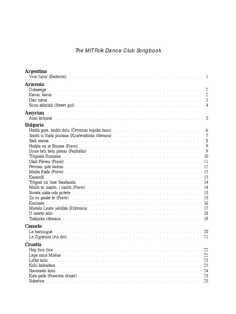 The Mit Folk Dance Club Songbook